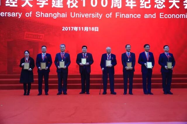 上海财经大学的每一步发展,取得的每一个成绩,都离不开全体教师员工的辛勤付出,也离不开海内外广大校友的鼎力支持。百年校庆前夕,学校组织评选了上海财经大学首届“郭秉文奖”和首届“杰出校友奖”,感谢和铭记各位教师、校友为国家建设和学校事业发展作出的贡献。纪念大会上,上海副市长翁铁慧为首届“郭秉文奖”颁奖。上海财经大学校董会名誉主席刘仲藜、金炳华为首届“杰出校友奖”颁奖。