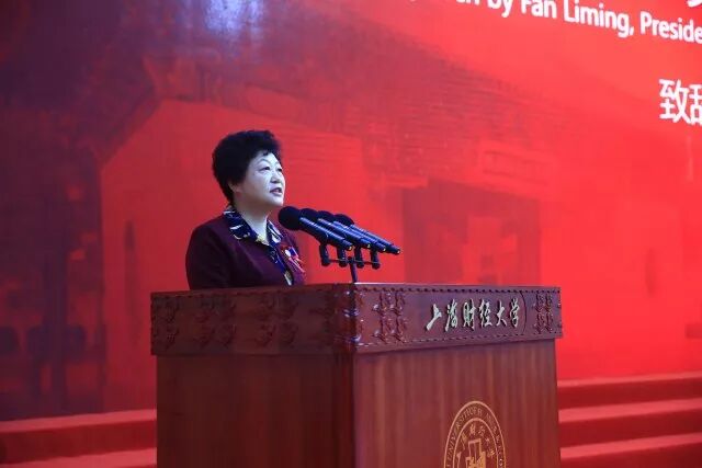 山东大学校长樊丽明在致辞中表示,她非常高兴回到活力四射的上海,回到曾经满怀激情、并肩工作的各位同事各位校友身边。首先代表山东大学向上海财经大学百年华诞表示最衷心的祝贺。从中国百年商学发展历程来看,中国高等商科教育的每一步成长都有上财人的卓越贡献。百年来,上海财经大学始终勇立潮头敢为先,走出了一条中国特色世界一流的高等财经教育发展之路。在“双一流”建设新征程中,她表达了对上财的热切期盼:第一,不忘初心,继续扎根中国大地办大学;第二,继续强化协同创新,对接国家和地区经济和社会发展的重大需求;第三,继续弘扬中国商学文化,坚守商道传统,涵养创业精神,为中华文化向世界传播作出应有的贡献。山东大学愿与上海财经大学继续携手同行,祝愿生机勃发的上海财经大学在新百年的征程中,百尺竿头更进一步,为中国社会经济发展、为高等财经教育的发展作出新的更大贡献。