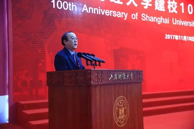 财政部党组成员、副部长胡静林在致辞中表示,上海财经大学既是中国独立设置财经院校发展的开拓者,也是中国财经教育发展史的见证人。在百年发展历程中,学校为民族工商业的振兴、新中国国民经济全面恢复和建设,以及改革开放和社会主义市场经济建设作出了积极的贡献。新时代意味着新起点、新任务、新要求。希望上海财经大学以纪念建校百年为契机,落实立德树人根本任务,更加紧密地对接国家重大战略需求,更加紧密地联系财政改革发展实际,在知识创新、咨政育人、文化传承、服务社会等方面发挥更重要的作用,在深化教育改革、加快教育现代化、办好人民满意的教育进程中,取得更大的成绩!