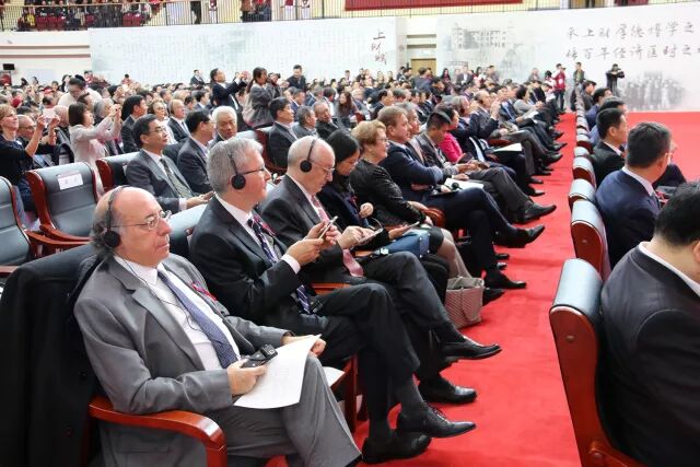 上午10时,纪念大会在庄严的国歌声中拉开帷幕。上海财经大学副校长蒋传海主持纪念大会,30余所境外高校及组织代表、60余所国内高校负责人、上海财经大学部分校董代表、来自世界各地的校友代表、老同志代表和师生员工代表,以及关心支持上财发展的各界嘉宾参会。国内50余所兄弟高校发来贺信、贺电。