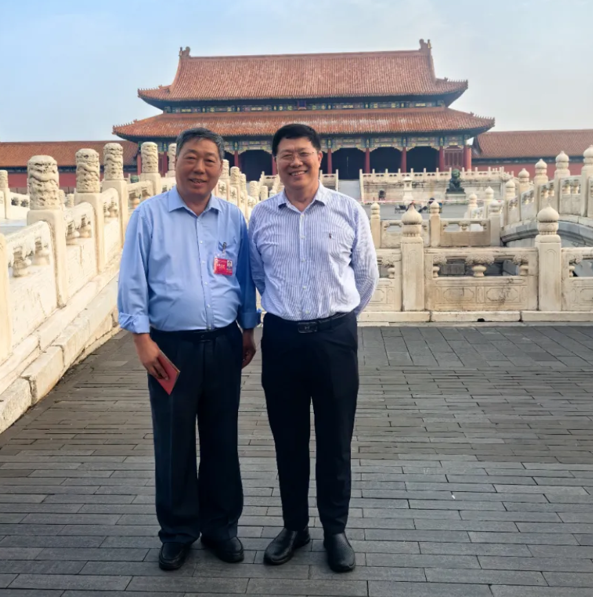 ▲ 张红武参事(左)与汤敏参事(右)在阅兵典礼入场前合影