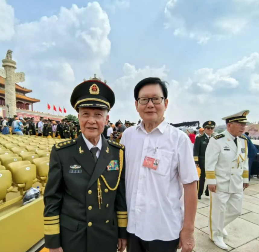 ▲基金会荣誉主席程路(右)与参加对越自卫反击战的钱树根上将 (左) 在阅兵观礼台