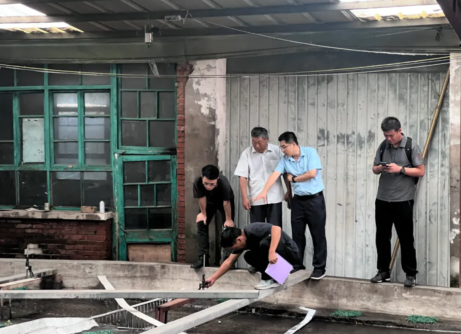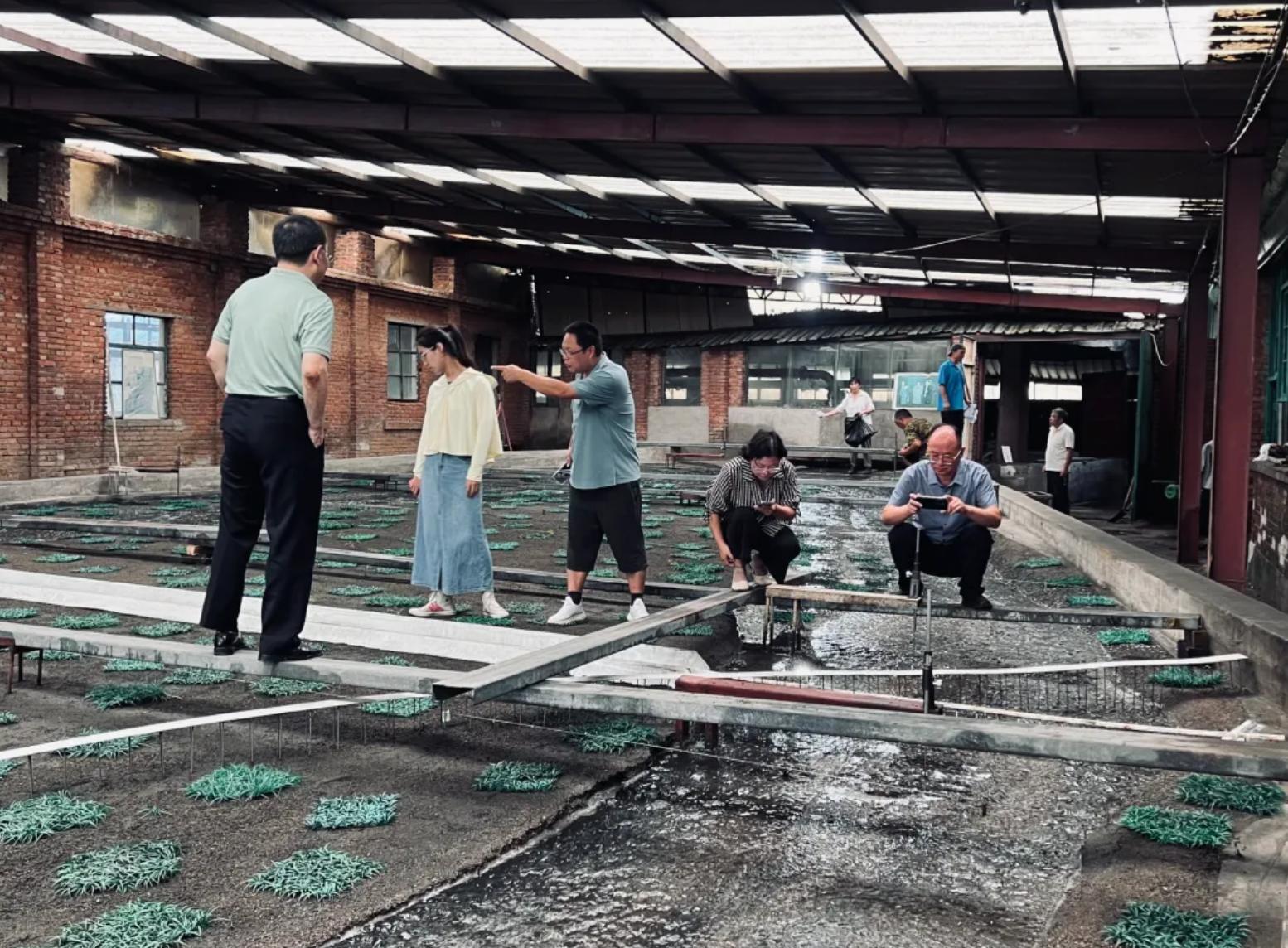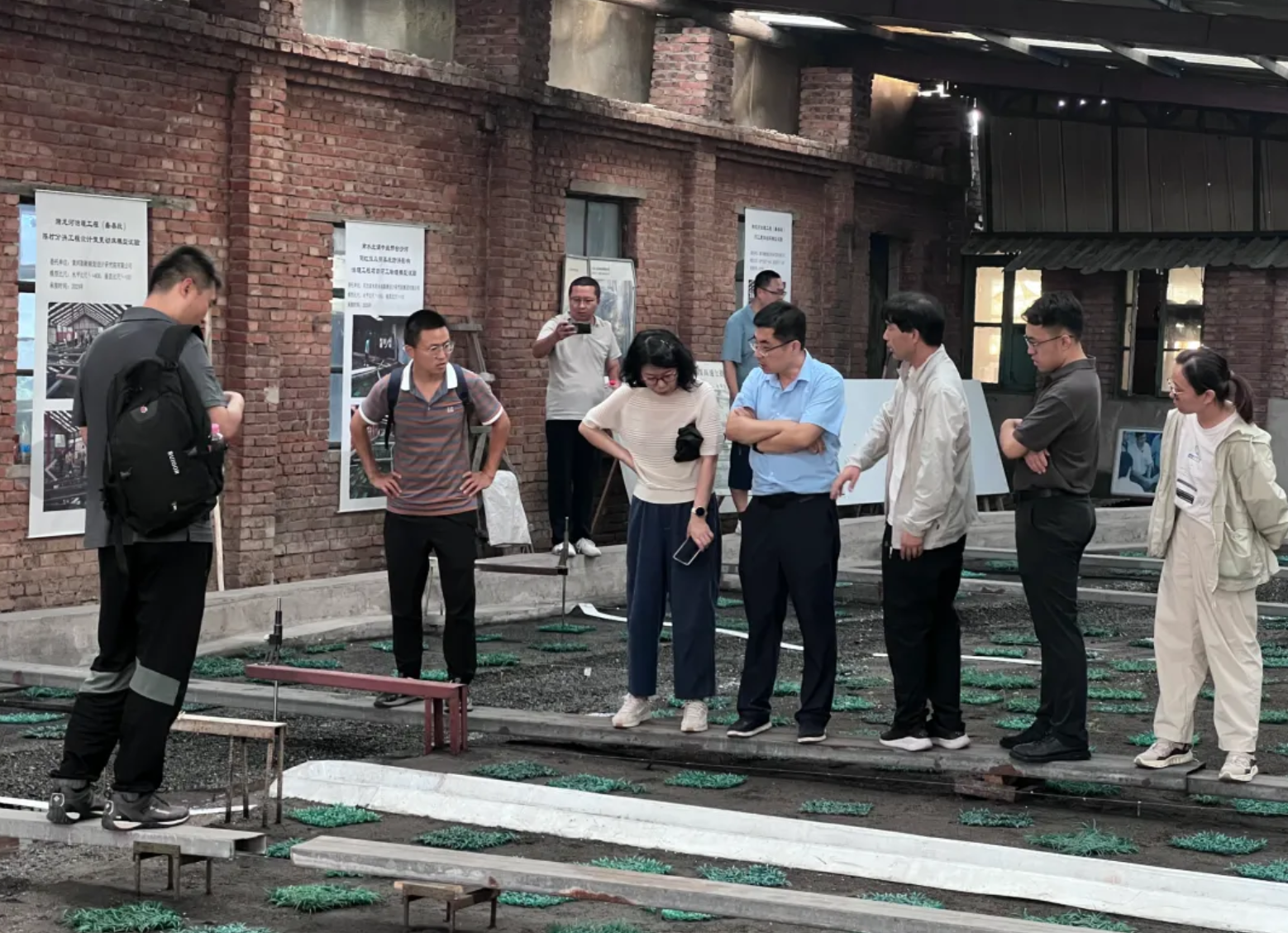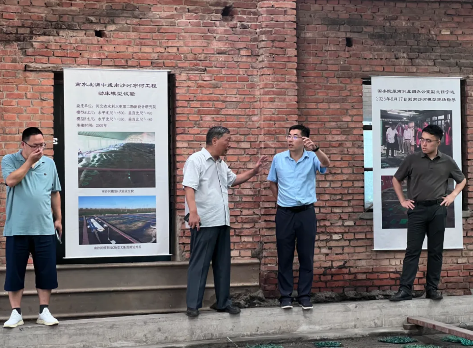 ▲上图:试验人员同设计专家讨论大沙河交叉断面试验条件