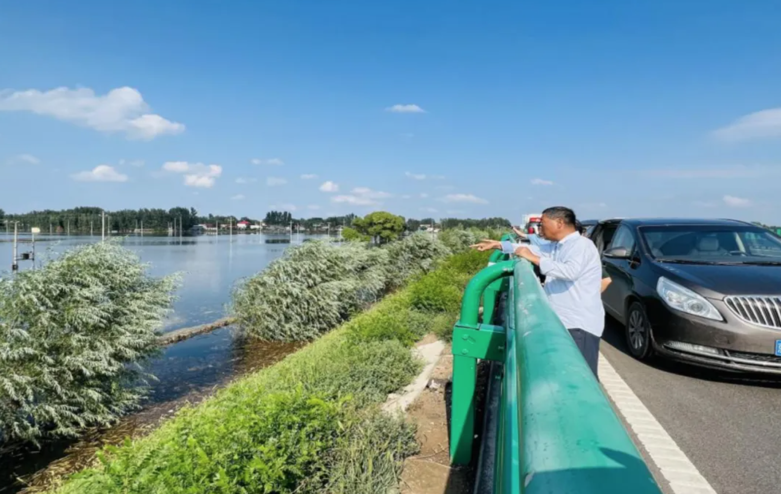 ▲上图:调研组到河北某河调研洪水淹没情况