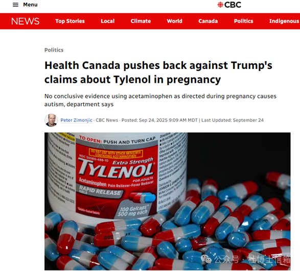 图6. 加拿大卫生部驳斥特朗普关于孕期服用泰诺的说法
