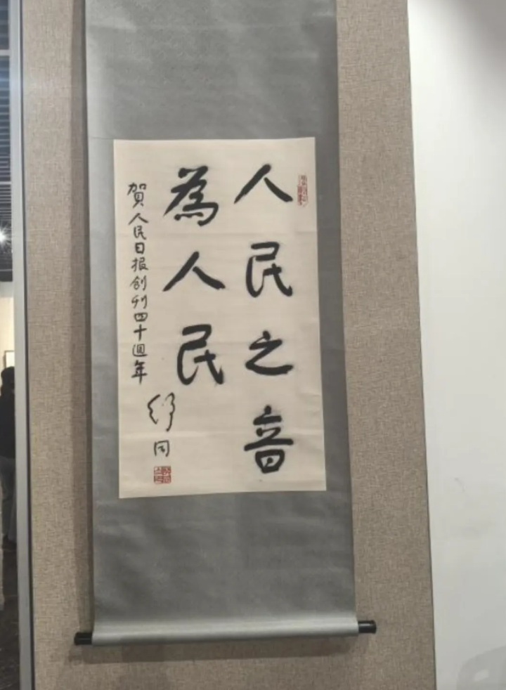▲ 舒同为人民日报创刊40周年题写的“人民之音为人民”(何娟摄)