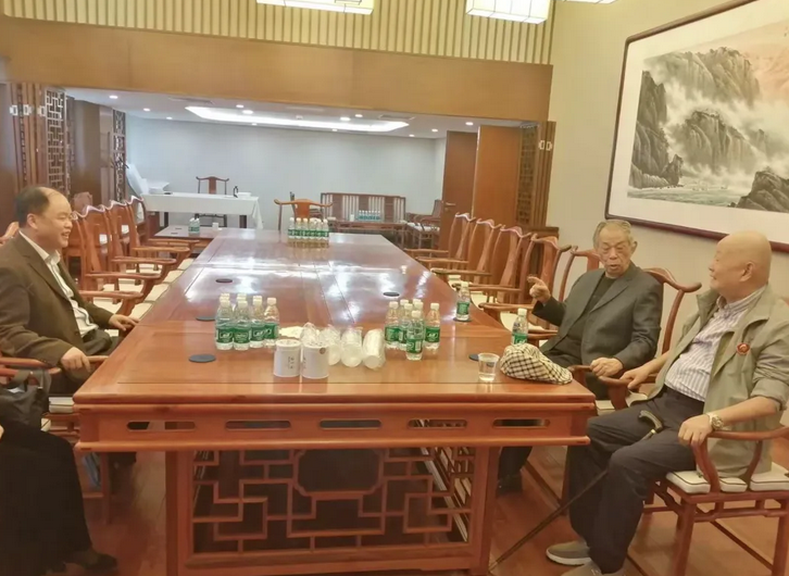 ▲座谈会后,人民日报领导(左)继续与柯林渭(右一)、孙增华(右二)交谈,以期在黄河公益方面深度合作