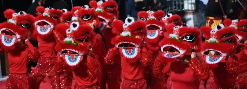 阵容继续前进,我们迎来由美中文化协会与美国奥淇宏盛舞狮团共同组成的狮子队。 50 位青少年组成的小狮子表演队。活泼灵动的小狮子象征吉祥与朝气,他们的加入为游 行带来欢乐与生命力,寓意文化的传承从下一代开始。