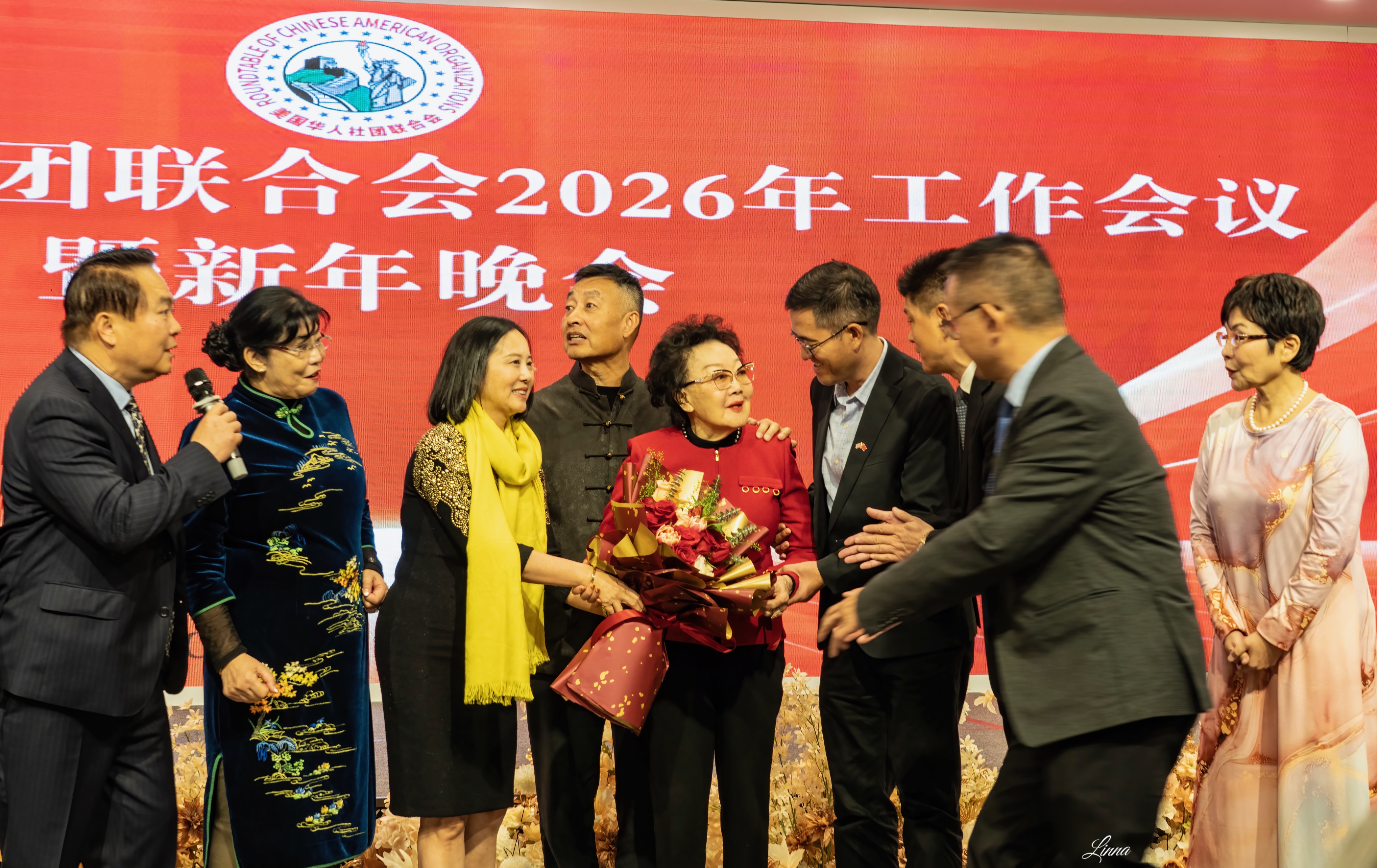 美国华人社团联合会(简称“美华联”)于 2025 年 12 月 21 日 在安大略万豪酒店隆重举行年度工作会议暨 2026 年新年联欢晚会。来自各成员社团的代表、侨界领袖、企业家及各界嘉宾300多人齐聚一堂,共同回顾 2025 年工作成果,审议重要议题,并展望 2026 年发展蓝图。 在工作会议上,美华联主席 张勇发表主题讲话,对会议主要议题作了说明。理事长江风年、监事长赵林、共同主席团主席许承武、执行长林连连、常务理事长朱俊英、常务监事长于忠霞、常委杨弼等领导先后致辞,从组织建设、文化交流、经贸合作、融入主流社会、社会服务和公益慈善等方面,总结了一年来取得的成绩。美华联荣誉主席鹿强、企业家联盟主席陈慧碧也先后发表了热情洋溢的讲话。与会领导一致表示,2025 年大家携手同行,2026 年将继续凝心聚力,推动美华联和社区发展再上新台阶。 本次会议的重要议程之一是审议并表决《美国华人社团联合会章程修正案》。工作人员清点到会代表人数后,监事长赵林宣布到会人数超过章程规定的三分之二,会议合规有效。法律事务委员会主任刘丽莎律师就章程修正案作了系统说明。美华联目前拥有 217 家社团和企业成员,随着规模不断扩大,原章程在机构设置、议事程序和治理结构等方面亟需与时俱进。大会按照章程规定进行表决,与会代表一致同意、零票反对,章程修正案顺利通过。此次修订标志着美华联在制度化、规范化、现代化治理方面迈出了重要一步。 随后举行的新年联欢会上,播放了 2025 年工作回顾视频,通过百余张活动照片集中展示了一年来丰富多彩的社团活动和成果,记录了许多难忘瞬间。 中国驻洛杉矶总领事馆副总领事郭志强、侨务领事路君燮应邀出席新年晚会。郭副总领事在致辞中充分肯定了美华联在服务侨界、融入主流社会等方面所取得的成绩,并寄语大家在新的一年继续为会员、为社区作出更多贡献。 晚会特别向美华联荣誉主席张素久大姐献花致敬,感谢其长期以来的支持与指导。今年出版的张素久大姐的英文自传《和平将军的女儿》被多所美国顶尖大学及中国国家级文博机构收藏,为海外华人的奋斗历史留下珍贵文献。 张勇主席在总结讲话中指出,2025 年是美华联极不平凡的一年:在组织建设方面,重建并扩大了经济贸易、文化艺术和科技教育委员会,将章程与选举委员会升级为法律事务委员会,并新增体育活动委员会;在文化和公益方面,成功举办《黄河大合唱》等大型活动,积极参与飞虎队纪念活动,联办“水立方杯”青少年歌曲比赛、传承杯国际艺术节、国色天香旗袍大赛,并持续开展山火救援和自闭症公益活动;在融入主流社会方面,组织 200 余人的方阵参加第 93 届好莱坞圣诞大游行,美国华人春晚首次走进托伦斯主流社会,获得良好反响。 展望 2026 年,美华联将围绕“同乡联谊、文化交流、经贸合作”三大重点,持续打造包括美国华人春晚、传承杯艺术节、好莱坞圣诞大游行等十大品牌项目,逐步形成“年年有主题、岁岁有亮点、项项可延续”的发展格局。 在新年联欢晚会上,美华联成员社团及艺术团体奉献了形式多样、内容丰富的文艺节目,充分展现了华人社区深厚的文化底蕴与蓬勃的艺术活力。晚会在中华国乐团民族管弦乐的悠扬旋律中拉开帷幕,节目涵盖声乐、舞蹈、器乐、朗诵等多种艺术形式。演出既有男高音独唱、女声小合唱,也有融合传统与现代元素的舞蹈节目;既有充满家国情怀的诗朗诵,也有戏歌、民族舞和器乐合奏等精彩呈现。多家成员社团和艺术团体积极参与,节目编排紧凑、内容丰富,现场掌声不断,气氛热烈。晚会最后还设置了互动娱乐环节,吸引多家社团即兴参与,将现场气氛推向高潮。整场演出充分体现了美华联团结协作、文化共融、积极向上的精神风貌。 活动由赵林 、邬素斐主持,林连连担任总策划,刘玮总导演,孙伟总指挥、张莉安总协调,为晚会的圆满成功作出了重要贡献。