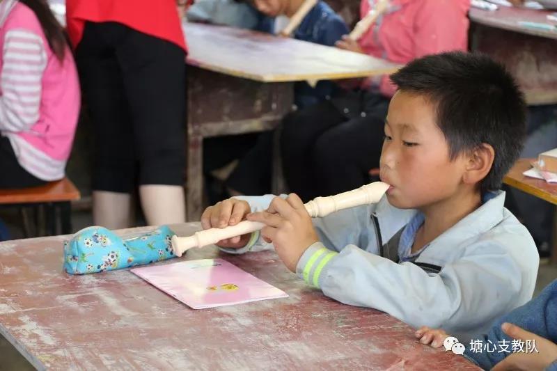 音乐课上卖力地吹着竖笛