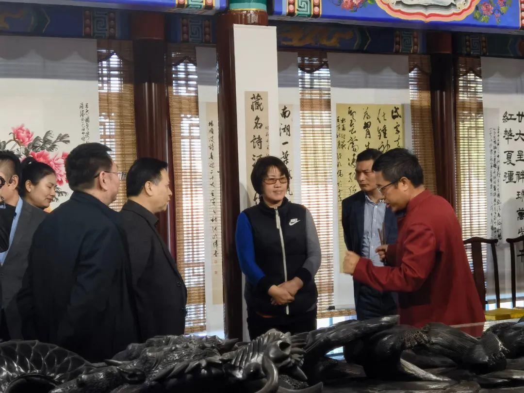 龙砚坊的女主人李洋女士向大家详细介绍了龙砚坊的建设过程,以及雕刻了56条龙、重量108吨的世界最大的龙砚台的传奇故事。