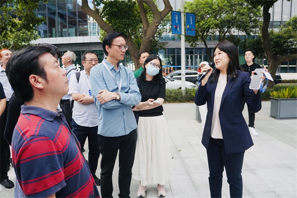 河套现已成为深港科技合作紧密度最高、融合度最强的区域之一。走出展厅,采访团一行来到香港科学园深圳分园参观访问。香港科技园(深圳)有限公司大湾区发展高级经理白雪介绍了香港科学园深圳分园的相关情况。作为内地首个由港方运营、适用国际管理规则的科技园区,香港科学园深圳分园建筑面积3万㎡,自今年9月7日正式开园以来,已有逾20家香港科创机构和企业入驻。