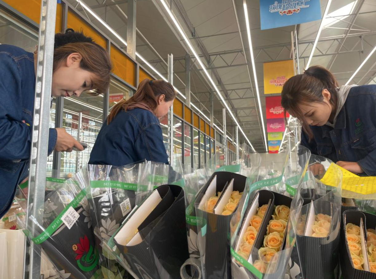 这个基地是昆阳街道墩子村和兴旺村的集体资产。“我们的玫瑰鲜切花产品发往国内30余个城市,部分玫瑰品种还远销国外。”墩子村乡村振兴专员朱婷介绍,目前基地共有56名工人,每人每月底薪为4000元,根据年终的产量评比,工人还可以获得额外奖励,一年的综合收入能达到6万元左右。