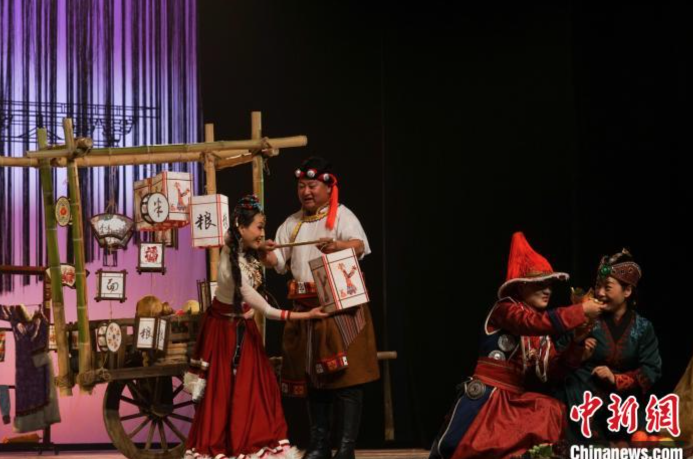 6月27日晚,由西宁艺术剧院创排演出的舞蹈诗剧《河湟》在西宁市上演。该剧追寻历史脉络,通过“记忆·河湟”“守望·河湟”“筑梦·河湟”三个独立成篇的戏剧故事,将河湟遗址中的文物瑰宝与青海本土多项非物质文化遗产相融合,以舞蹈形式讲述河湟大地的历史变迁。2023年6月《河湟》在西宁市首演。今年,西宁艺术剧院独立承担复排演出任务,对该剧进行打磨提升,冀将其打造为西宁演艺特色品牌、文化新名片。由黄河、湟水河及大通河三条河流冲积而成的河湟地区多元文化并存、历史悠久,青海省会西宁市是河湟文化的核心区之一。图为舞蹈诗剧《河湟》在青海省西宁市上演,该剧第三幕“筑梦·河湟”反映丹噶尔古城“茶马互市”繁荣兴盛的景象。中新社记者 马铭言 摄