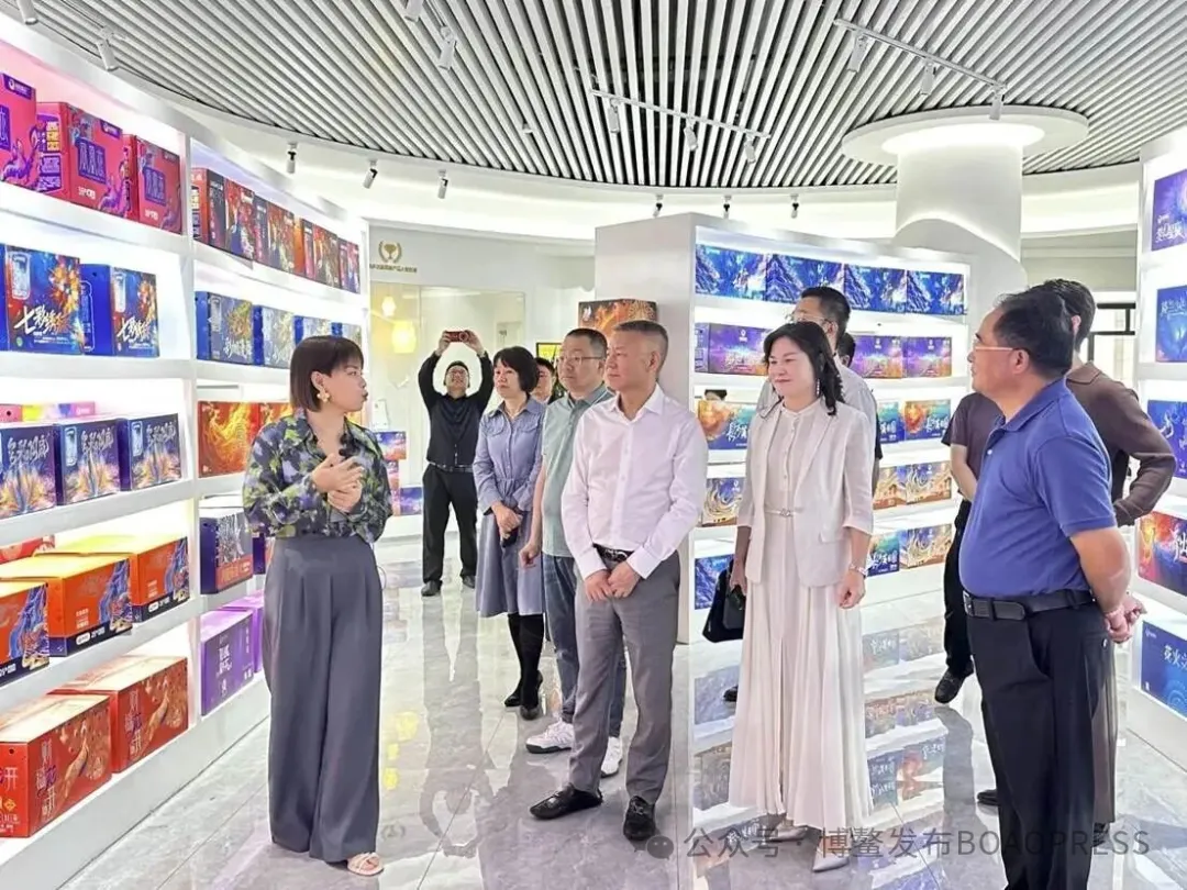 庆泰花炮集团的国际烟花博物馆,是考察组此行的重要一站。在这里,一段段与烟花相关的历史故事被生动讲述:从花炮始祖李畋发明烟花爆竹的传奇,到慈禧太后60寿宴时专门从浏阳采购“大盆花”的典故;在这里,非遗鞭炮制作的传统流程得以完整展示——12道核心流程、72道精细工序,每一步都彰显着传统工艺的匠心;在这里,还能了解到一位仅有小学文化的农民黄蔚德,如何凭借毅力将自己的烟花企业打造成行业头部企业的创业历程。庆泰花炮集团副总经理汤利向考察组详细介绍了“无硫烟花”的研发进展,以及集团未来在技术创新、市场拓展等方面的规划。当听闻庆泰花炮集团创始人黄蔚德先生几十年来始终秉持“做企业就是在做慈善”的理念,用实际行动弘扬大爱情怀、传递人间美德时,考察组全体成员深受感动。