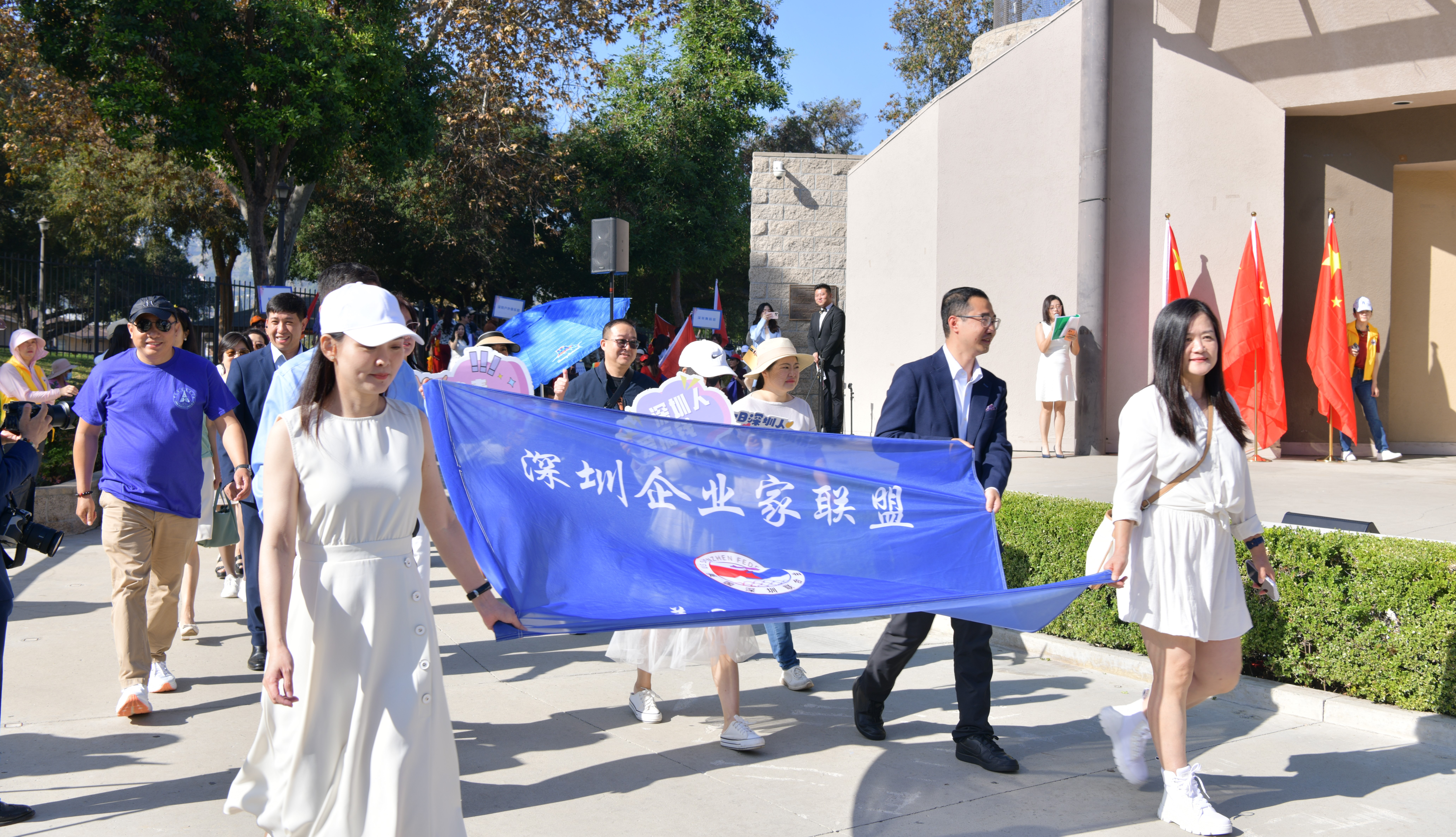 入场式队伍(共21支)包括:美国深圳联合会理事会,互助联盟,物流供应链联盟,企业家联盟,深圳艺术团,股票投资俱乐部,地产投资俱乐部,高尔夫俱乐部,共创尔湾社群,深圳舞蹈团,深圳户外摄影俱乐部,深圳静心俱乐部,深圳瑜伽俱乐部,深圳义工团,家乡有爱基金会,世界阳光女人联合会,Coway净水器Sophia团队,SFO 物流公司,中南财经政法大学南加州校友会,魅力歌舞,风雷艺术团。