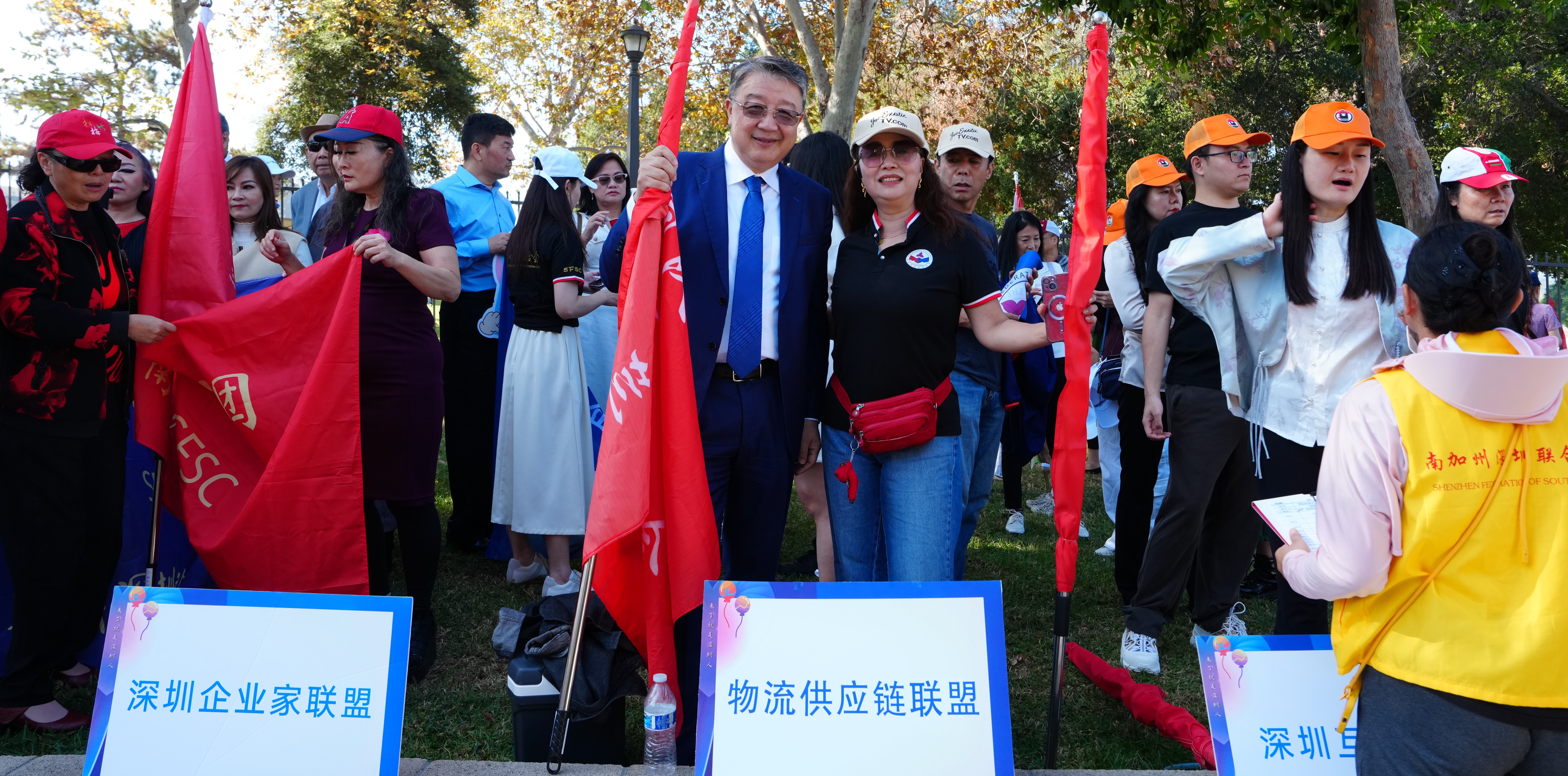 作为在美深圳人的核心联谊平台,本次活动将“他乡遇故知”化为现实。上午十点,团队入场仪式将现场气氛推向高潮。21支队伍在激昂的进行曲中依次登场,美国深圳联合会旗下15支业务联盟与兴趣俱乐部闪亮亮相,6家友好社团及深圳企业方队紧随其后,挥舞队牌与旗帜、高呼口号,尽显深圳人的拼搏底色与团结力量。