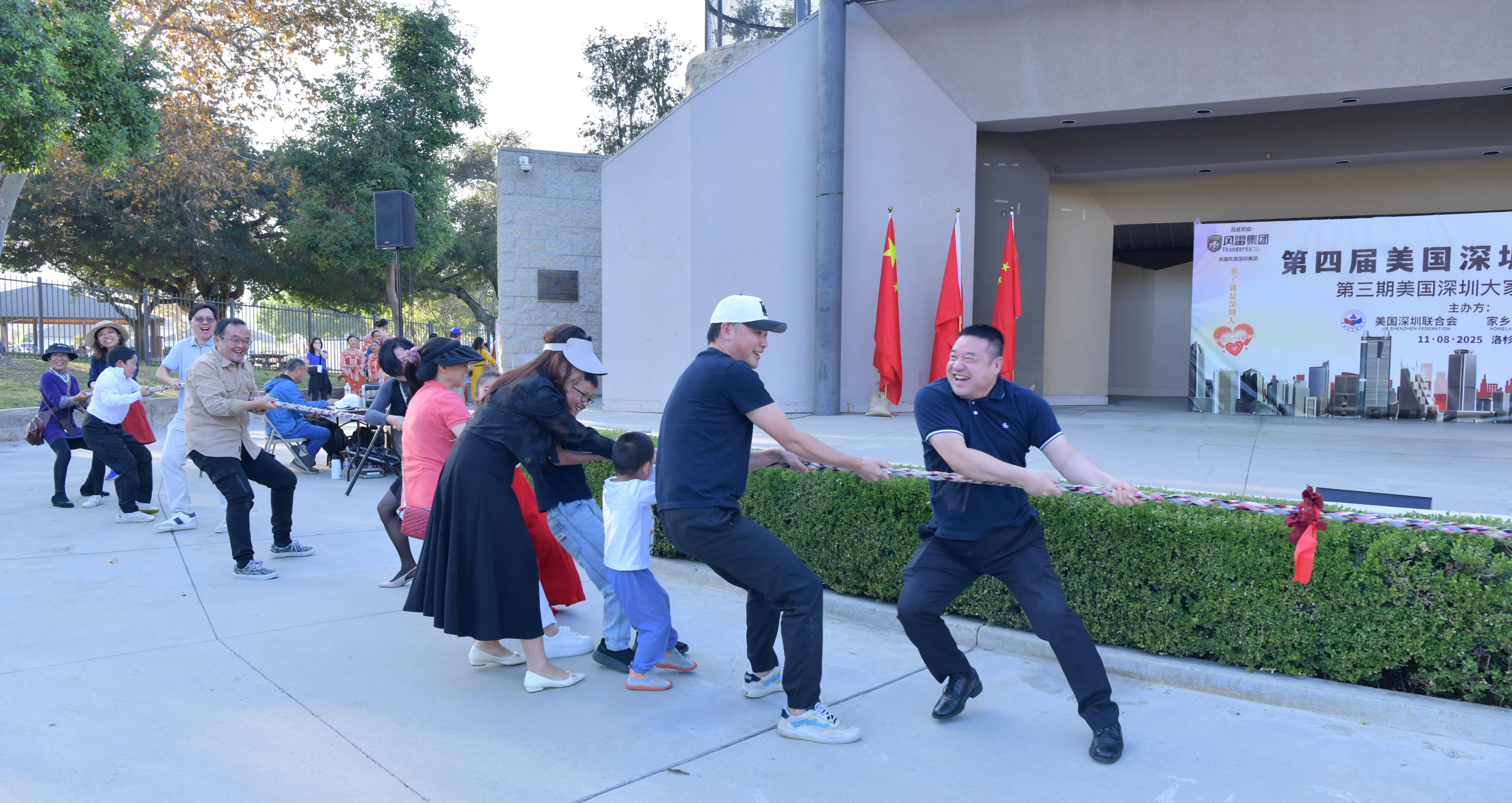 午餐畅谈与互动交流环节,更成为老友重逢、新朋结缘的温馨时刻。下午一点,“美国深圳大家乐舞台”文艺演出精彩上演。近三小时、24个节目轮番登场,涵盖传统舞、现代舞、器乐合奏、京剧等多种形式,来自美国深圳艺术团等15个知名团体的表演,为观众献上一场高水准的视听盛宴,被不少参与者誉为南加地区艺术水准最高的文艺演出之一。压轴进行的拔河比赛,男女老少齐参与,齐心协力的呐喊与拼搏,将乡情化为更深厚的联结。