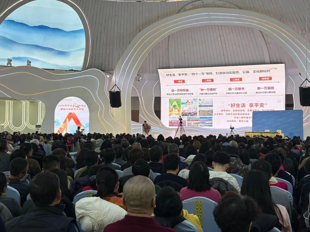 2026年1月11日,平安“心守护”蒙医心身医学健康大讲堂在呼和浩特举行,近1500名金融界人士参与。纳贡毕力格博士主讲,分享心身调节技巧,活动助力金融从业者应对健康挑战,践行“健康中国”战略。