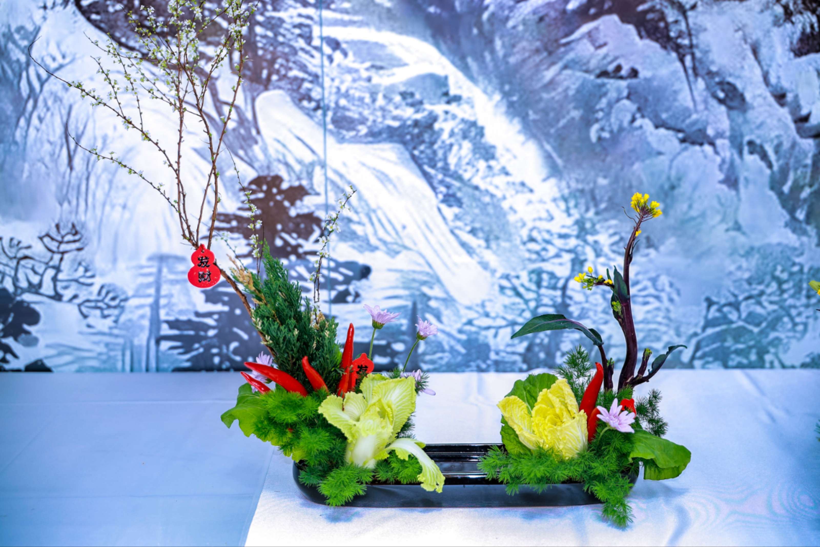 北京时间1月15日,北京湖北大厦,“江城百臻”洪山菜薹区域公用品牌推介会上,一场融合自然灵性与人文哲思的艺术展示悄然吸引全场目光——湖北汉阳非遗知音花艺代表性传承人、武汉汉阳知音花艺协会会长柯杏林以洪山菜薹为材,将千年蔬果与百年花艺巧妙结合,呈现出一系列意境深远的插花作品,为农产品品牌注入了可触可感的东方美学基因。