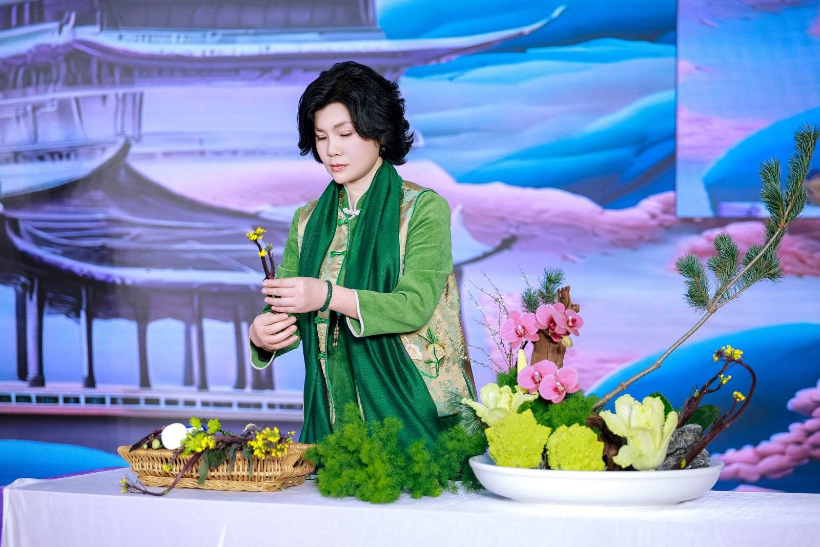 柯杏林的创新并非无源之水。她曾接受系统的非遗传承人课程训练,熟练掌握碗花直立式、盘花倾斜式、瓶花悬崖式等传统器型与技法。而此次选择洪山菜薹这一非传统花材,既呼应了传统插花“日常草木皆可入作”的包容性,也体现了传承人“守正出新”的创作理念——在延续古典审美原则的同时,积极回应地域文化与当代需求。