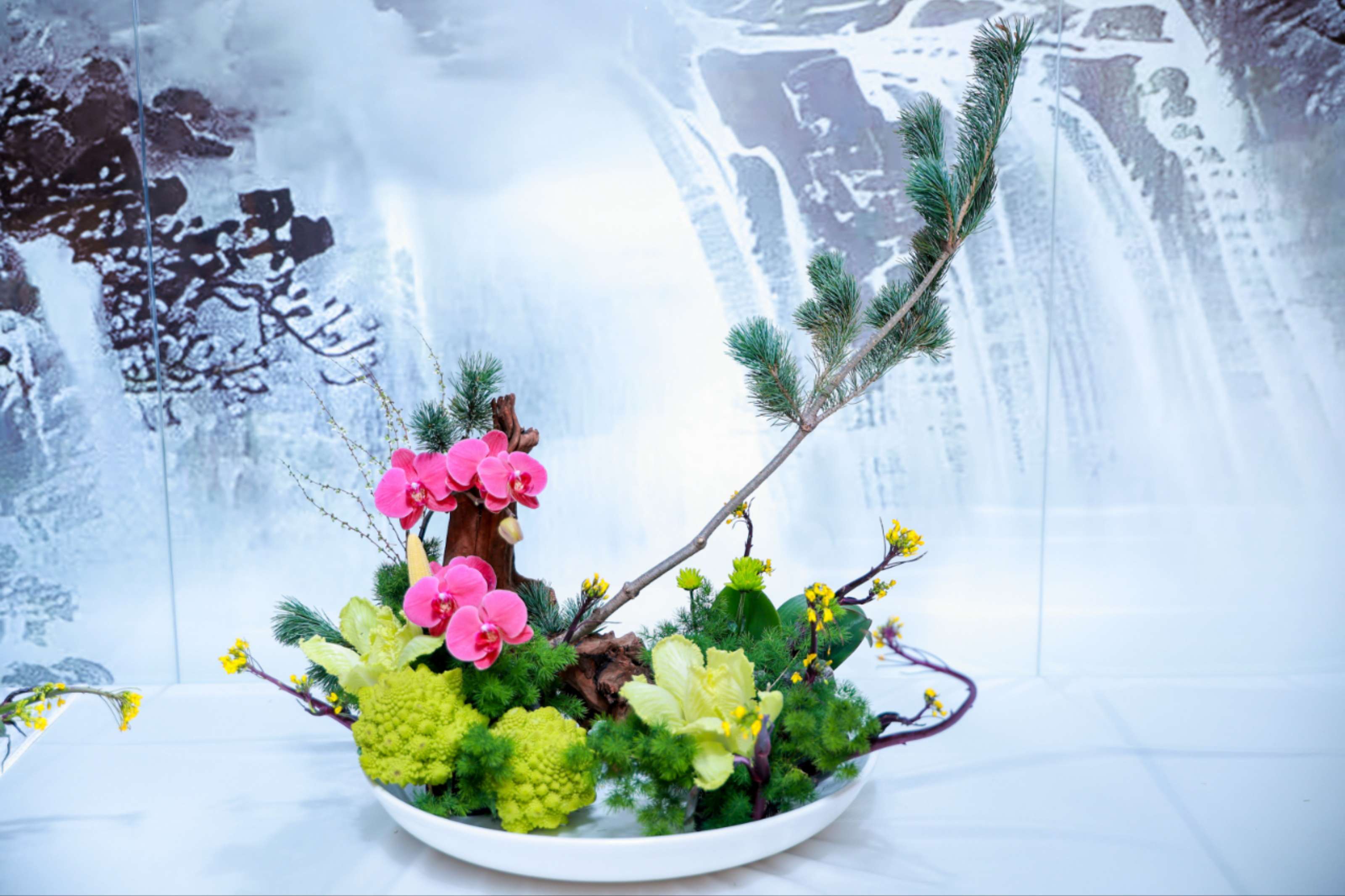 作为传统插花艺术的传承者,柯杏林的创作根植于深厚的文化土壤。中国传统插花艺术萌芽于春秋战国,历经唐宋的鼎盛与明清的体系化,形成了一套完整的美学范式。其精髓在于不止于形式美,更追求意境营造与情感寄托。
