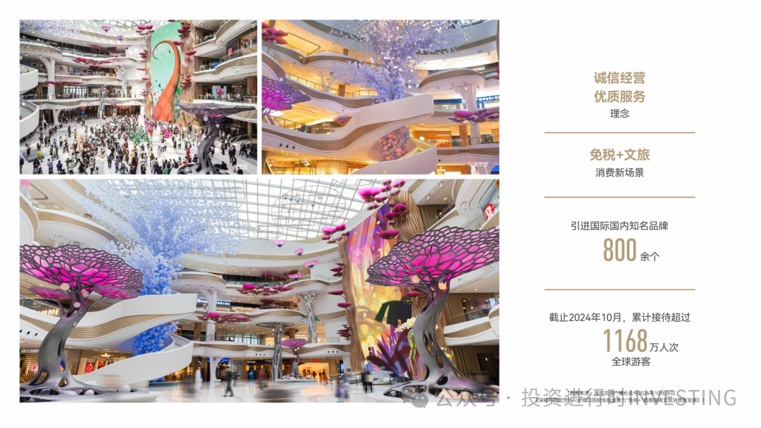 中国旅游集团在海南的投资版图十分广泛,涵盖三亚免税店、海口国际免税城、博鳌免税店、邮轮业务、旅游地产、旅游驿站等多个领域。作为海口国际免税城的建设管理者表示:“海口国际免税城不仅仅是购物场所,更是文旅融合的综合体。”这座占地面积达28.3万平方米的全球最大单体免税商业综合体,已于2022年10月全面投入运营。“2025年,海口国际免税城年度接待国内外游客650万人次,实现销售额65亿元。”海口免税城运营负责人透露。政策东风