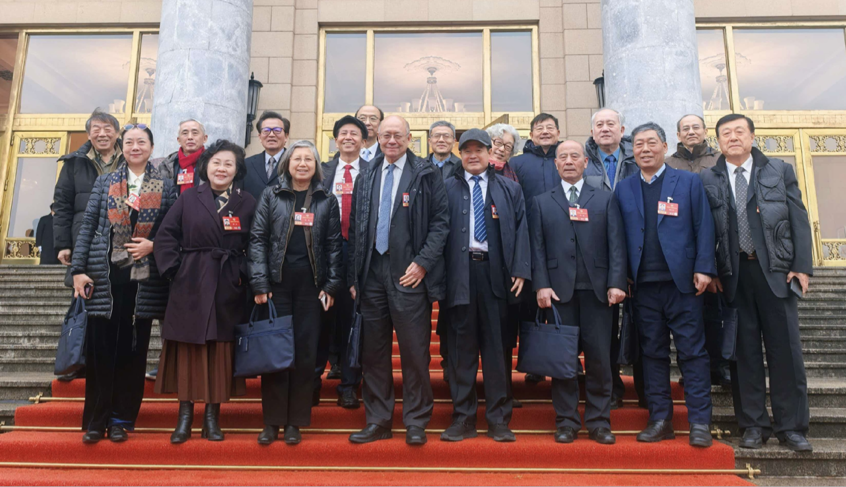 张红武参事(前排左一)和黄河缘公益基金会发起人之一李武参事(前排左二)在人民大会堂参加两会