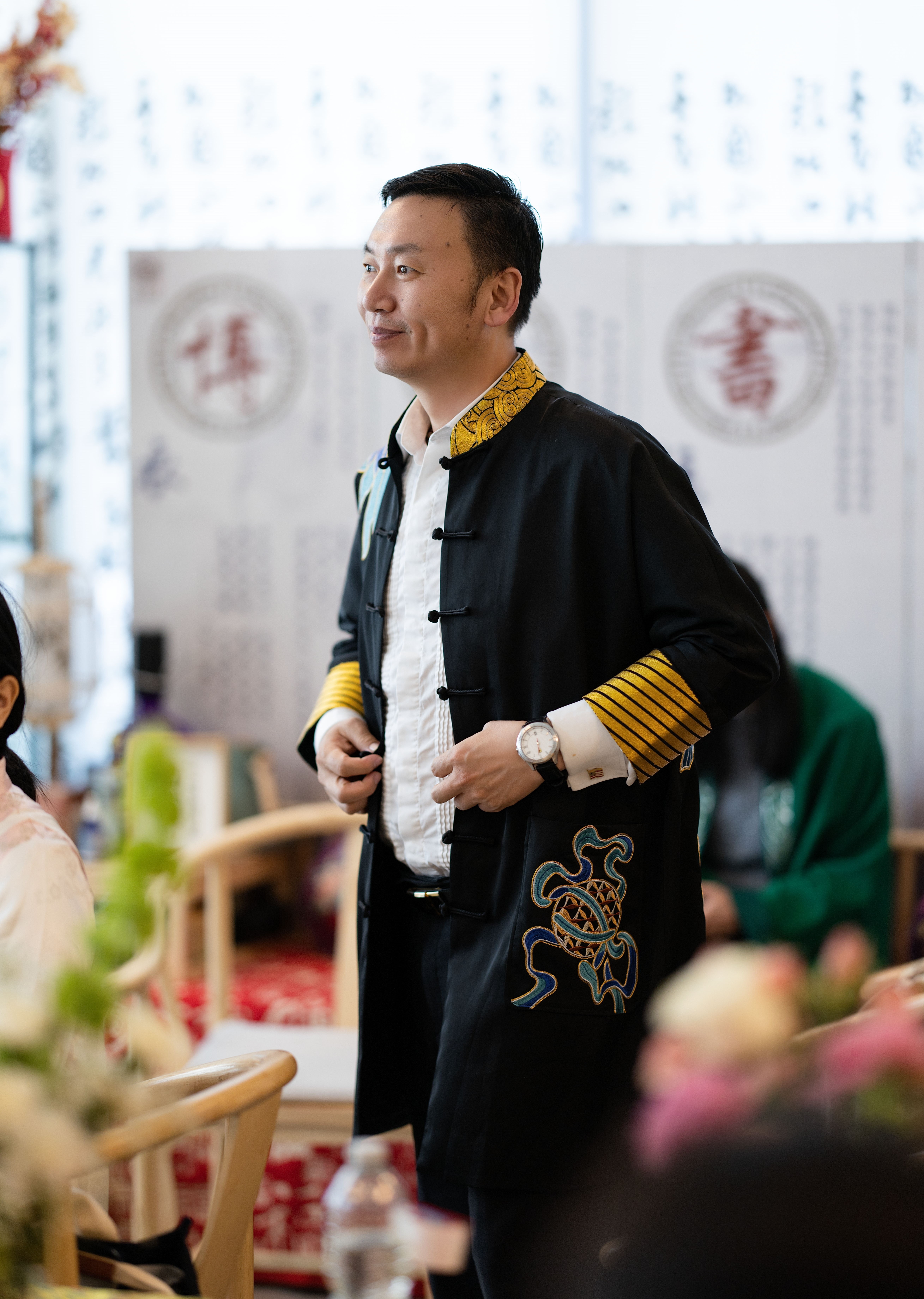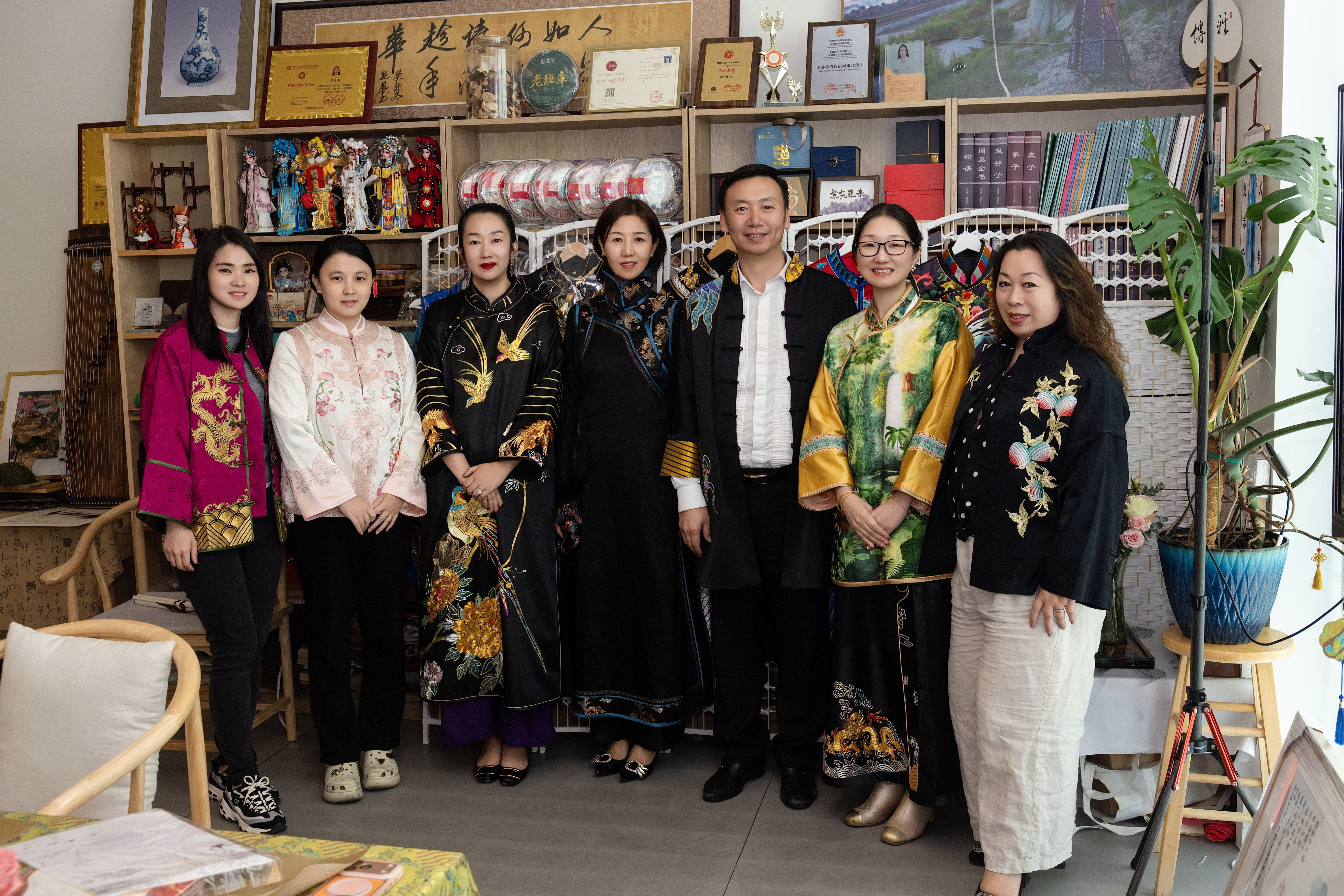 活动最后,嘉宾们在书院空间中合影留念,将这一段春日雅集定格为一幅充满东方气息的集体影像。专业摄影师 Jeremy 为每位嘉宾记录下身着祥瑞麒麟非遗华服的精彩瞬间,将东方服饰之美定格于光影之间,也为这场文化雅集留下珍贵影像。