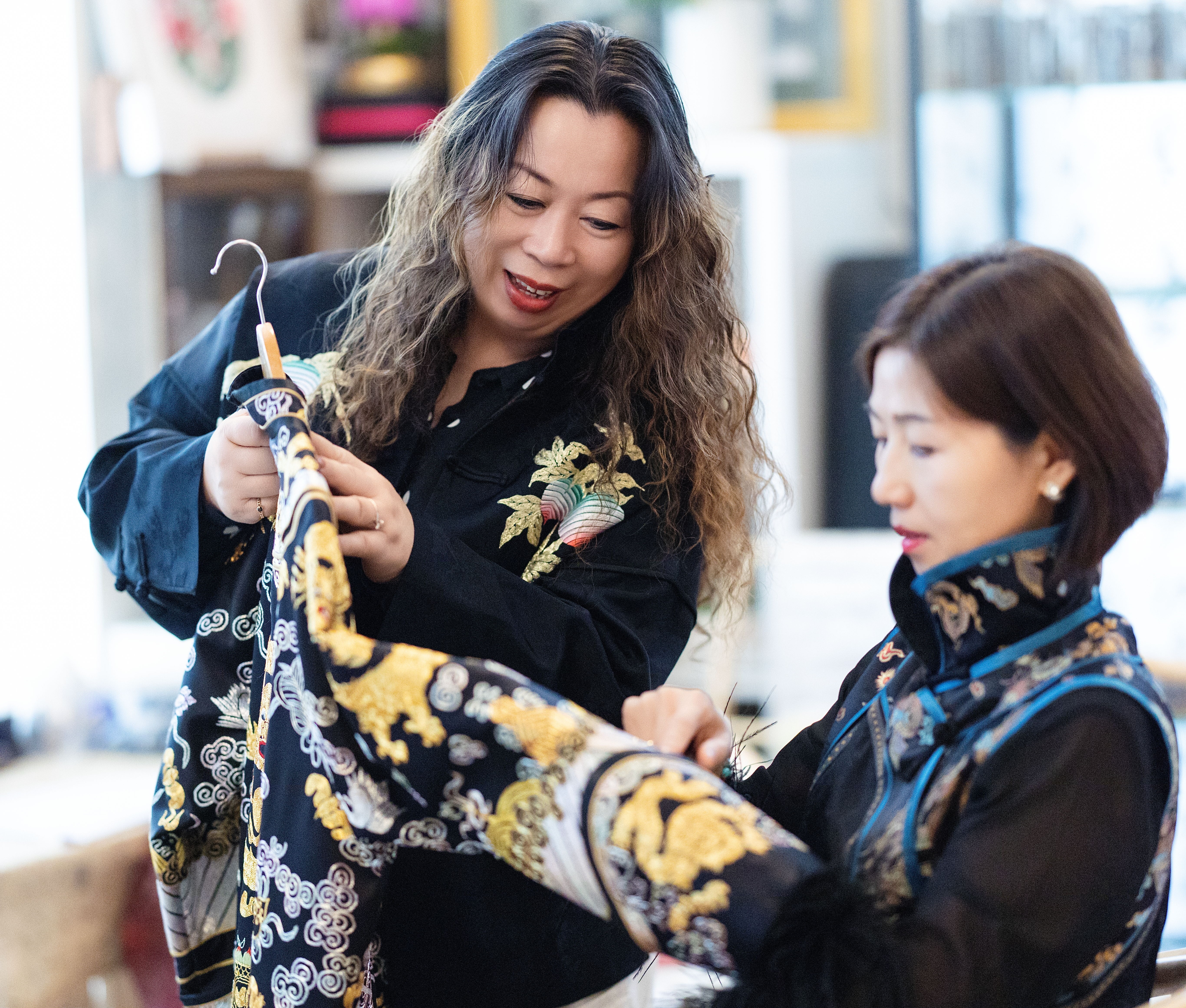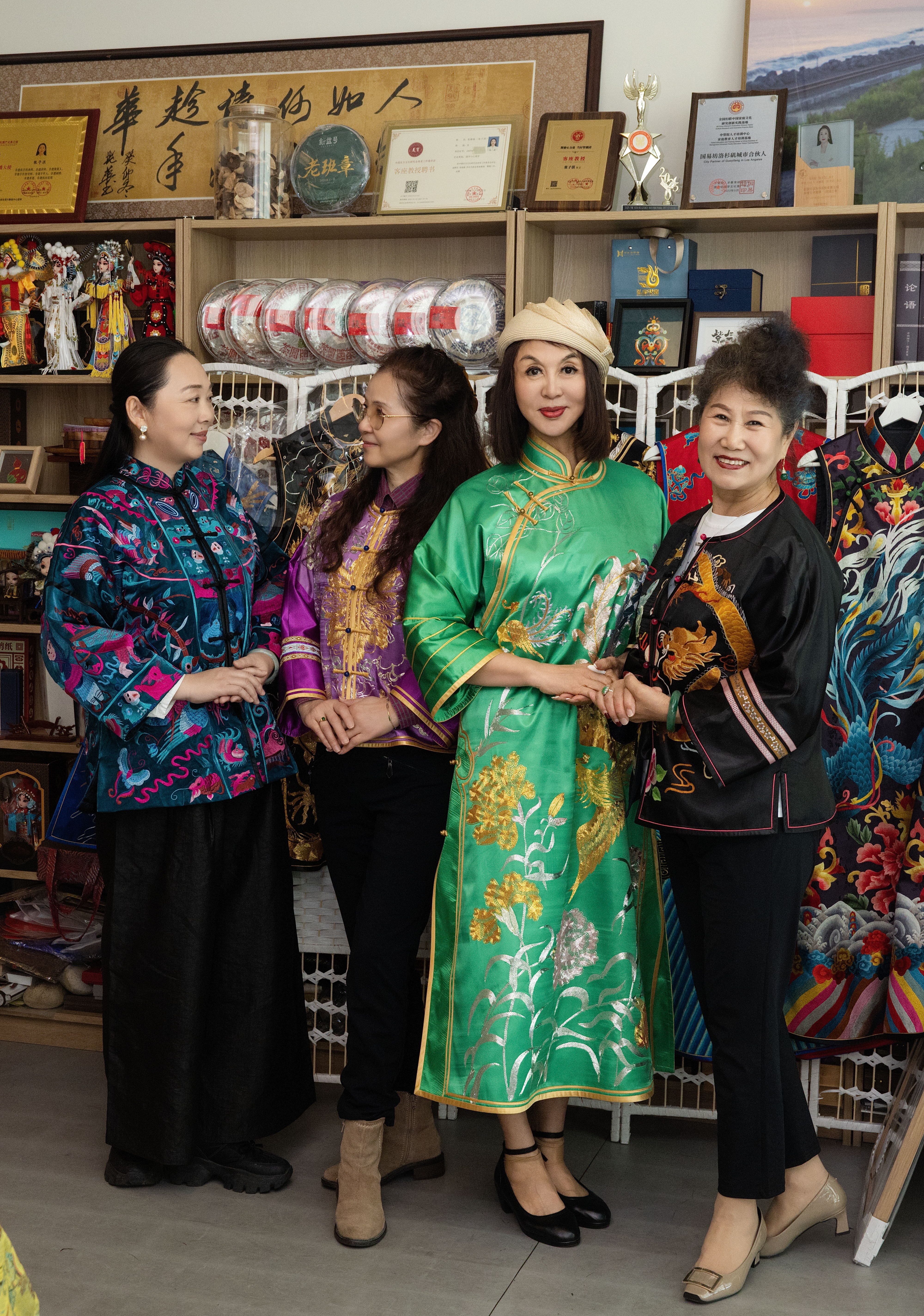 在随后的互动交流环节中,嘉宾们纷纷换上华丽的祥瑞麒麟非遗华服,在书院空间中留下优雅身影。伴随着轻松而温暖的交流氛围,每位嘉宾也分享了自己在北美生活与文化体验中的点滴故事。从创业经历到文化认同,从家庭生活到跨文化交流,这些真诚而生动的分享让这场沙龙不仅成为一次华服文化的体验,也成为彼此交流与倾听的人文聚会。