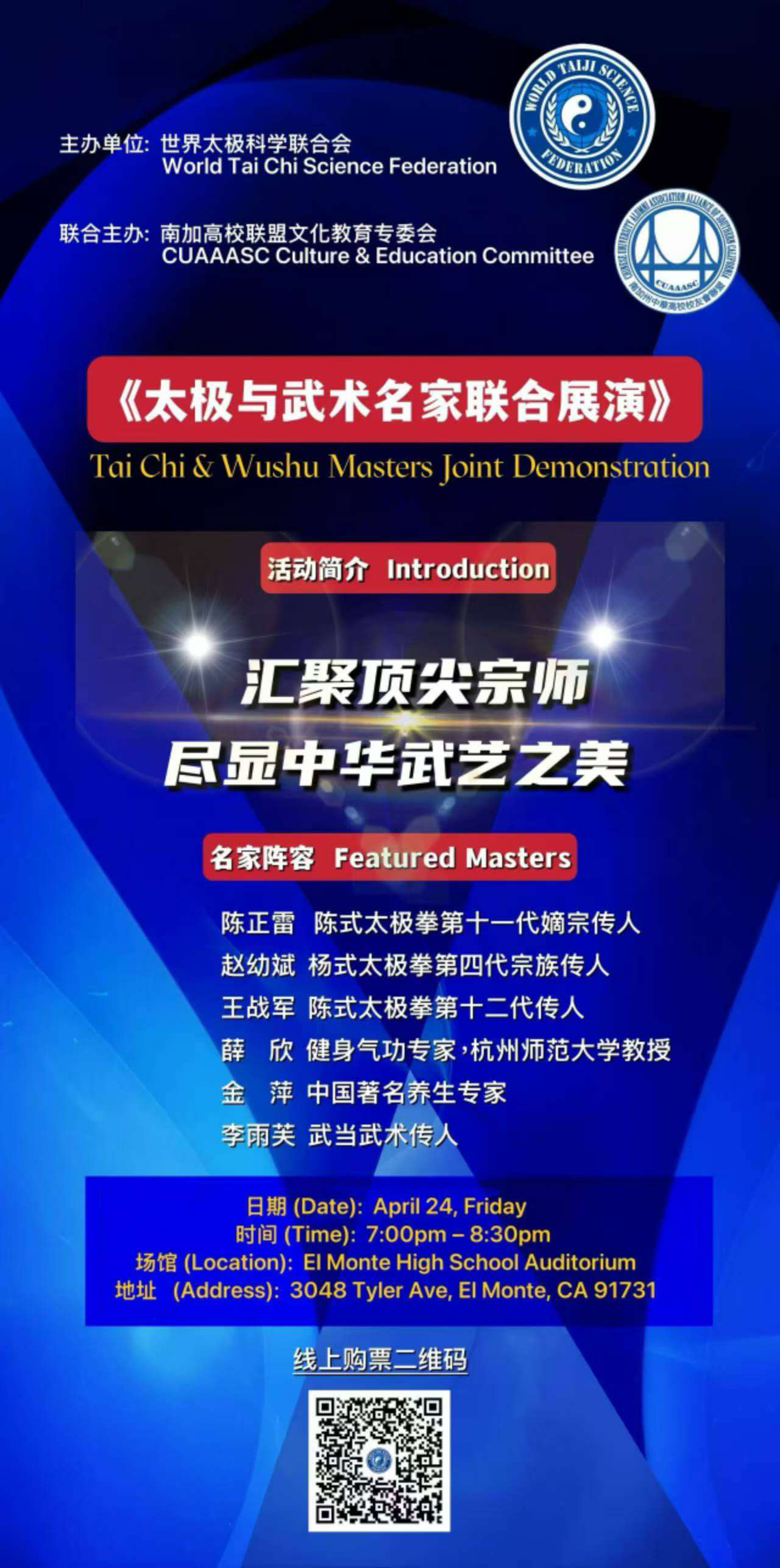 美西时间4月24日,由世界太极科学联合会主办,AOC青少年公益组织联合主办,沙国政武术文化美国研究会、SANTEEFIT、北美武苑等单位共同协办的《国际太极与武术名家盛典之夜》在洛杉矶成功举行。