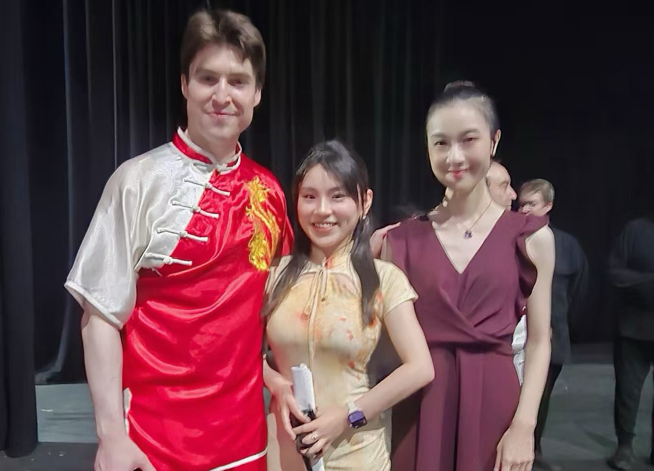 大会总导演杨陈雪源与主持人白龙(左)和林雯汐(右)